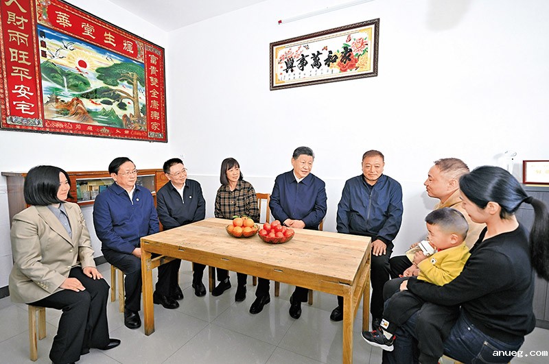 2024年11月4日至6日,中共中央总书记、国家主席、中央军委主席习近平在湖北考察。这是5日上午,习近平在咸宁市嘉鱼县潘家湾镇四邑村村民熊成龙家,同一家人围坐在一起拉家常。 新华社记者 燕雁/摄
