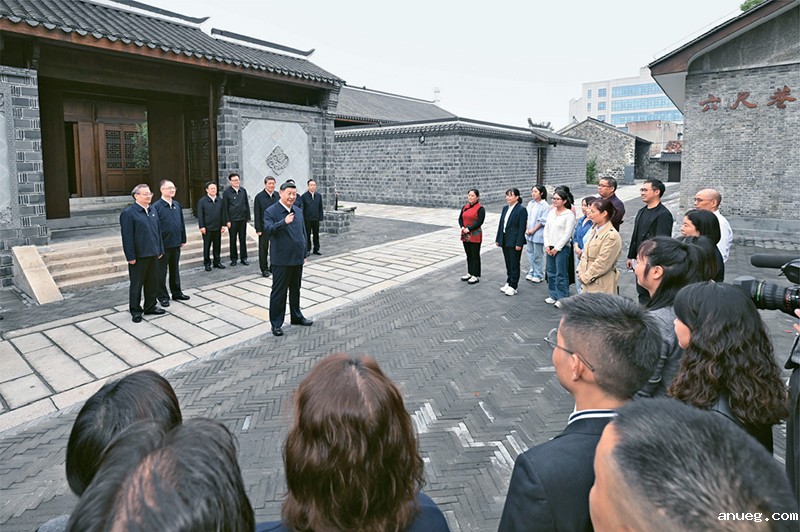 2024年10月17日至18日,中共中央总书记、国家主席、中央军委主席习近平在安徽考察。这是17日下午,习近平在安庆桐城市六尺巷考察时,同当地居民和游客亲切交流。 新华社记者 申宏/摄