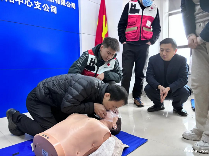 培训现场,培训讲师围绕红十字运动知识、心肺复苏、自动体外除颤器(AED)的使用、气道异物梗阻等内容,以理论讲授、现场演示、实践操作等方式进行授课,向员工普及日常的急救技巧,向员工强调了应急救护“黄金四分钟”的重要性,员工通过实操掌握了胸外按压、人工呼吸等应急救护技能。