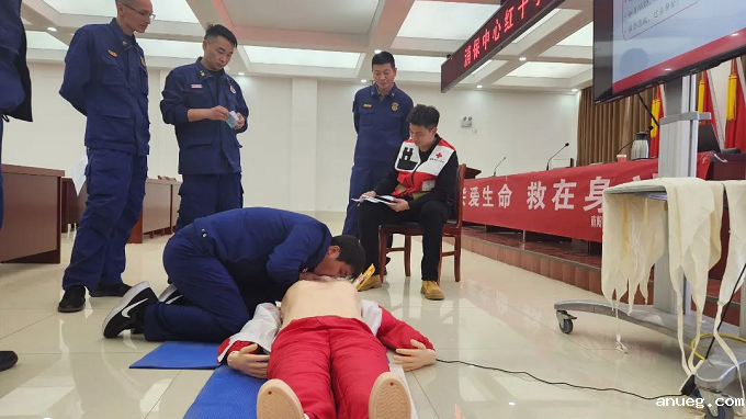 “如果遇到不同体型与年龄层救护对象,施展CPR按压深度也有所不同。”培训课上,红十字救护师资通过现场救护技巧演示和救护实例,分析讲解应急救护知识,激发消防队员认真学习救护知识的意愿。针对消防救援队可能面对的复杂救援场景,重点讲授心肺复苏、气道异物梗阻和创伤救护等应急救护技能,提高消防救援队员现场救护能力和水平。