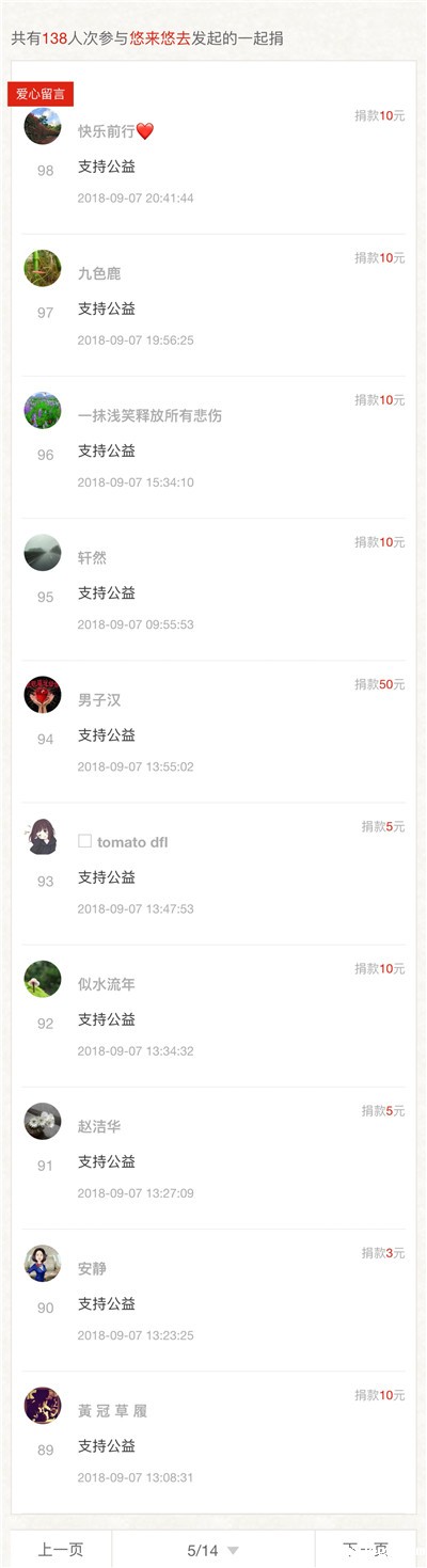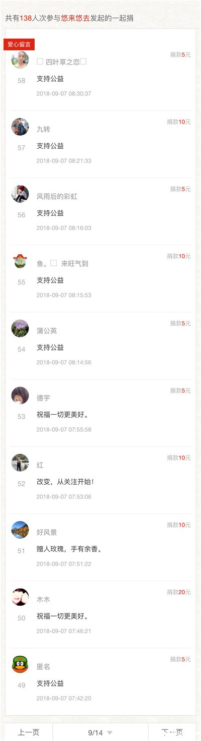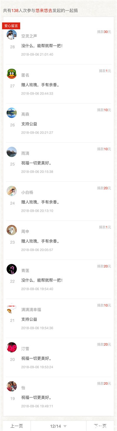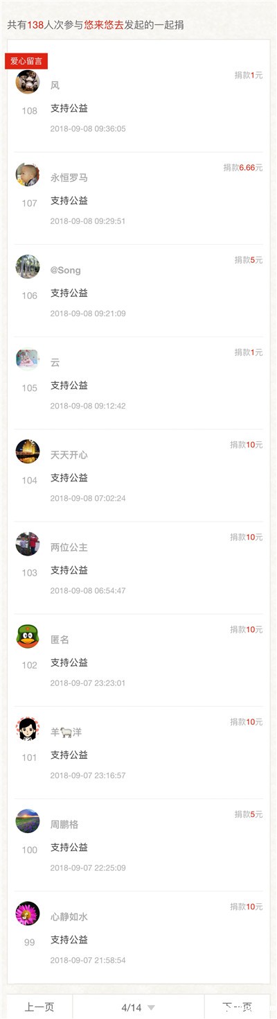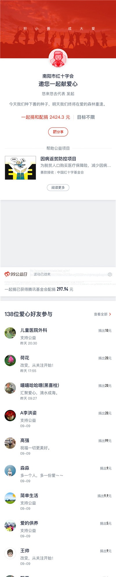 经前期在18luck新利网页版网站及转发微信朋友圈和微信群,河南省红十字会开展的2018年“99公益日”线上项目筹资活动得到了社会各界爱心人士的大力支持。自9月6日至9月11日,通过“18luck新利网页版邀您一起献爱心”链接共接收爱心捐款2424.3元,现将捐款名单公示如下: