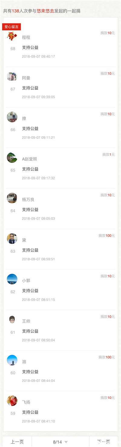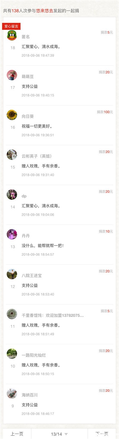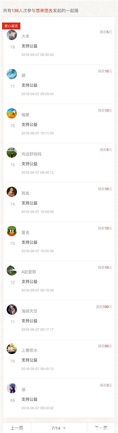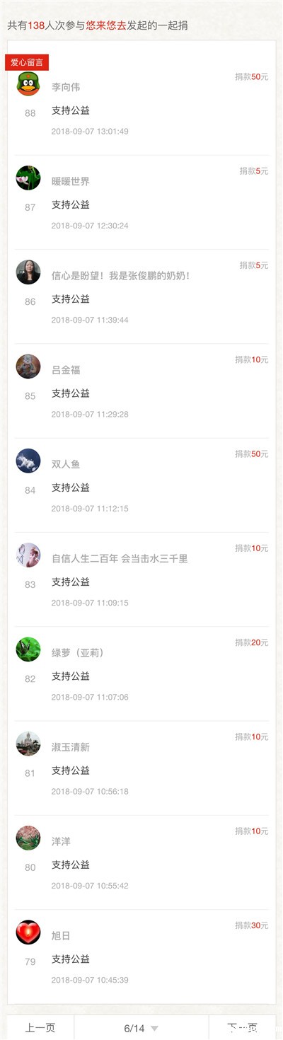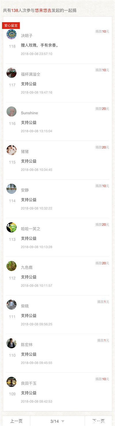 经前期在18luck新利网页版网站及转发微信朋友圈和微信群,河南省红十字会开展的2018年“99公益日”线上项目筹资活动得到了社会各界爱心人士的大力支持。自9月6日至9月11日,通过“18luck新利网页版邀您一起献爱心”链接共接收爱心捐款2424.3元,现将捐款名单公示如下: